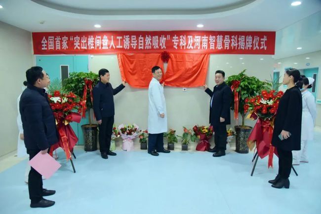 12月24日,全国首个“突出椎间盘人工诱导自然吸收”专科及河南智慧骨科在郑州大学第一附属医院南院区骨二科正式揭牌,郑大一附院副院长苟建军,信阳市第三人民医院书记张国栋、院长余新华,郑大一附院骨科副主任、南院区骨二科主任张春霖出席仪式并揭牌。